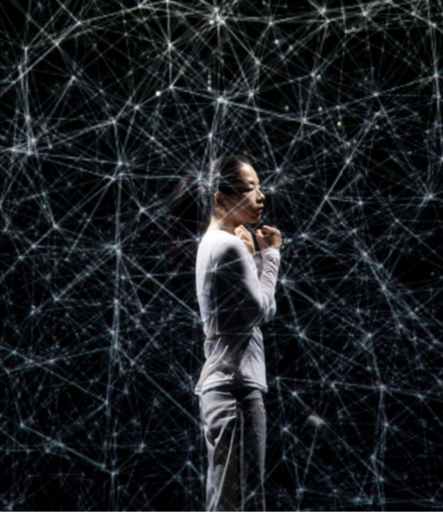 Hakanaï is a haiku dance performance that takes place in a cube of moving images,