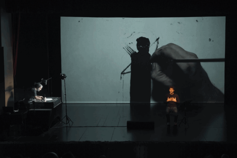 Stefano Paradisi, in scena con il visual artist Massimo Racozzi e il musicista e autore Claudio Parrino, adatta drammaturgicamente la riscrittura di Gianni Rodari del celebre mito per raccontare con parole, immagini e musica il brano di vita di un’adolescente sola in un mondo maschile, umana e divina, speciale e nel contempo uguale a tante altre, unica e universale: un’eroina senza tempo e una coraggiosa ragazza dei giorni nostri, padrona assoluta della propria vita.