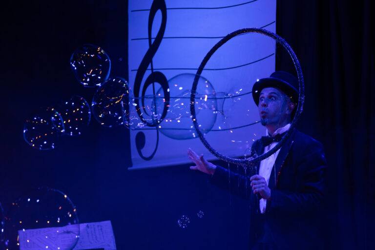 Un racconto visuale senza parole, che trae ispirazione dalle atmosfere circensi e del varietà. Un magico spettacolo di clownerie, pantomima e musica che, nato per i più piccoli, finisce per incantare il pubblico di qualsiasi età.