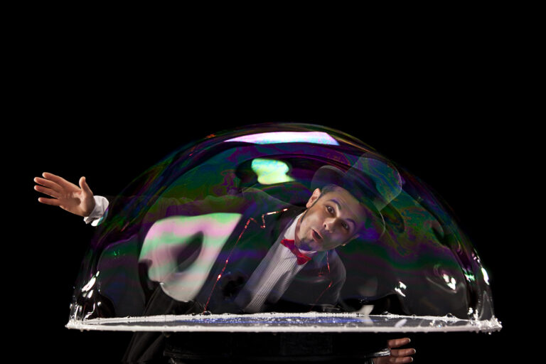 Lo spettacolo, che attualmente conta più di 1000 repliche, è stato presentato per la prima volta al Museo della Scienza e della Tecnica “Leonardo da Vinci” di Milano nell’ambito delle attività organizzate dal laboratorio scientifico di bolle di sapone per poi viaggiare in festival, scuole, varietà, gran galà e trasmissioni televisive.