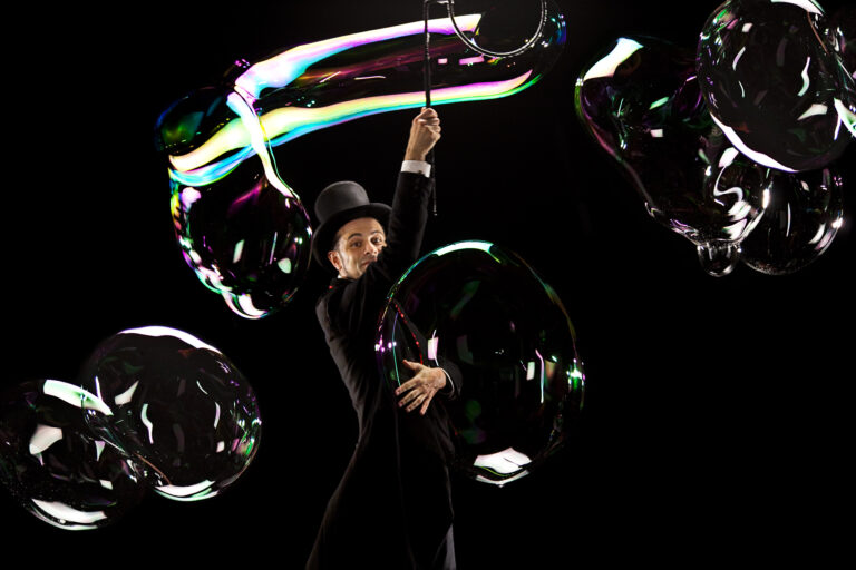 A idearlo Michele Cafaggi, primo artista in Italia a creare uno spettacolo intero dedicato alle bolle di sapone. Dal 1993 si esibisce come artista di strada e di teatro in Italia e in molti altri paesi del mondo passando con disinvoltura dalle grandi platee internazionali alle feste di paese, scuole, teatri, ospedali, case di riposo, carceri e ovunque ci sia l’occasione e il piacere di incontrarsi con il pubblico. E’ Dottor Sogno presso i reparti pediatrici dove opera la Fondazione Theodora Onlus.